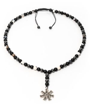 Necklace of natural stones with steel cross for gentlemen